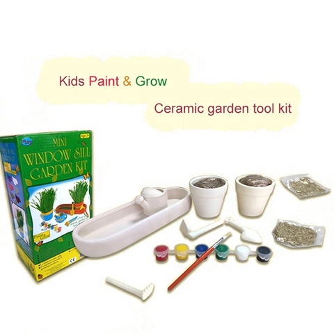 Kit de ferramentas de cerâmica para artesanato, mini jardim de cerâmica de flores e vasos para crianças, plantio de tinta e planta